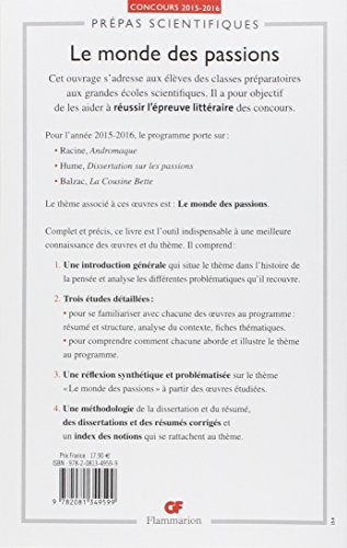 Le monde des Passions: Racine, "Andromaque", Hume, "Dissertation sur les passions", Balzac, "La cousine Bette"