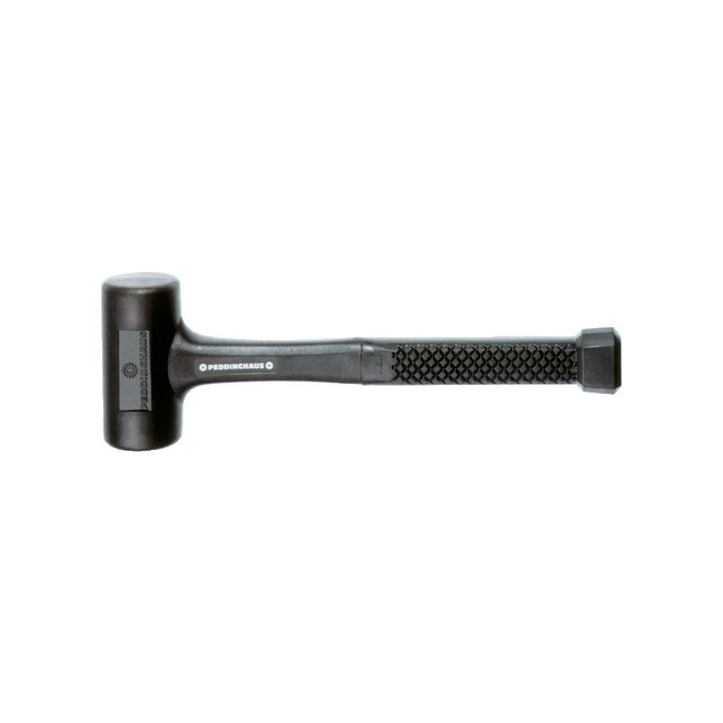 Dettagli: Testa riempita di sfere d'acciaio - corpo in acciaio - completamente rivestito in NBR FRAPPE Nessun effetto di rimbalzo, testa parzialmente riempita di sfere d'acciaio. Effetto inerziale al momento dell'impatto. Durezza ridotta: A86. Riduce il rischio di frantumazione delle parti metalliche quando vengono colpite. Completamente sovrastampato: gomma nitrilica NBR, resistente da -2°C a +9°C. Previene la rottura della testa e la fuoriuscita della sfera. Utilizzo: assemblaggio, montaggio, posizionamento di parti, ideale per fasi di regolazione precise. Specifiche: B mm: 35 A mm: 90 Lunghezza in mm: 280