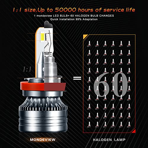 MONDEVIEW Coppia LED H11 6000K 60W 16000LM Lampadina H8 H9 LED per Auto e Moto 400% Luminosità Estremamente Elevata CREE LED CHIP 360° LED H9 Lampadina Fendinebbia Bi-xeno con Fari Abbaglianti