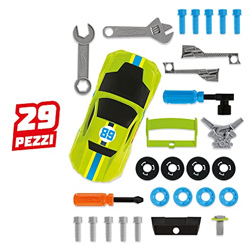 Set completo - Questo Set Hot Wheels include tutto ciò di cui i bambini hanno bisogno per costruire, mettere a punto e personalizzare la loro auto da corsa | include 29 pezzi di personalizzazione aggiuntivi tra cui: una carrozzeria, 10 viti, 4 cerchioni per pneumatici, 4 pneumatici, 2 scarichi, 2 spoiler, 1 motore, 1 bullone del filtro dell'aria, 1 cacciavite Philips, 1 chiave di base, 1 chiave regolabile e 1 chiave a bussola.