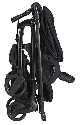 Chiusura a ombrello compatta con la seduta in entrambe le posizioni di marcia. Chiuso sta in piedi da solo