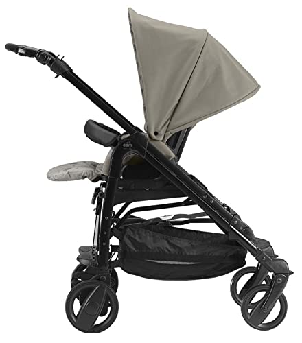 Chiusura a ombrello compatta con la seduta in entrambe le posizioni di marcia. Chiuso sta in piedi da solo