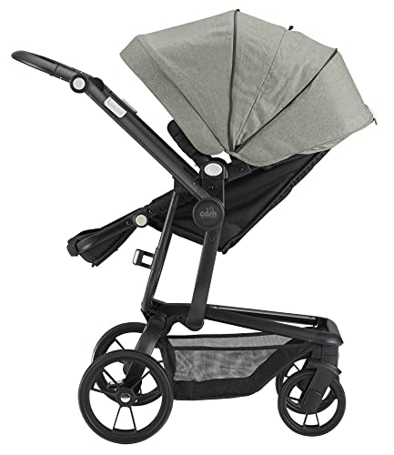 Carrozzina ampia. Dotata di sistema di aggancio/sgancio rapido. Maniglione antiribaltamento. Schienale reclinabile in 3 posizioni con una sola mano. Fondo aerato e base a dondolo