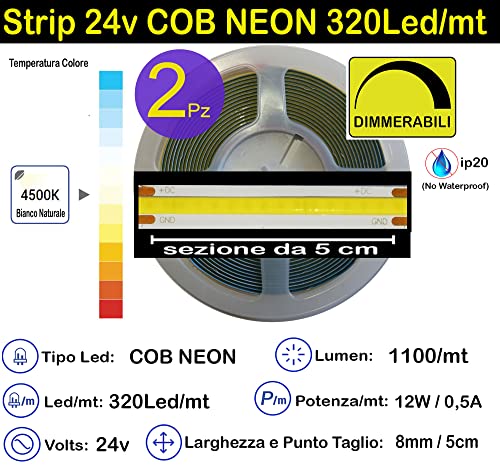 ✅ Kit da 10 Metri composto da 2 bobine (Biadesive e Dimmerabili) da 5mt smd COB, 24V, 320Led/mt, 12Watt/mt + 1 Trasformatore Piatto 24V, 120W, 5A, misure: 15,9*9,5*2,9cm