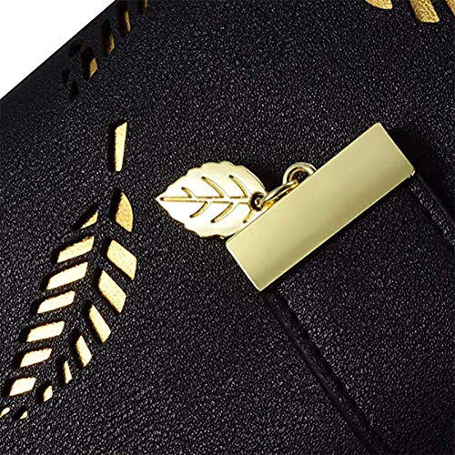 Mondpalast Donna Portafoglio Portafogli da Donna Portamonete Pelle PU Borsa Borsello Borsellino Foglia d'oro Hollow Grande capacit_ Tasca con Cerniera per Carte di Credito Banconote - Nero