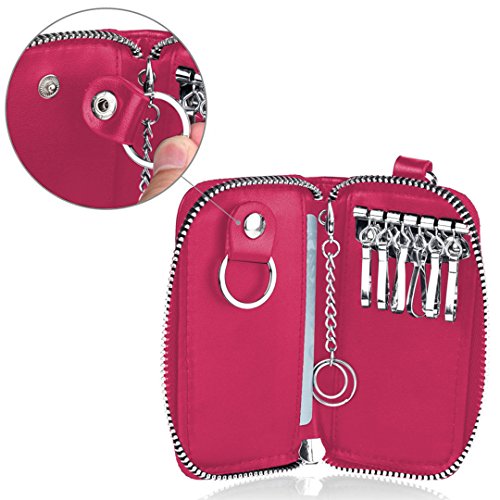 Mondpalast MPTECK @ Rosa Raccoglitore Chiave Cassa Chiave Cerniera Portafoglio per Donna Donne in PU Pelle organizzatori Portachiavi Classico Raccoglitore Chiave Cuoio per Uomo e Donne