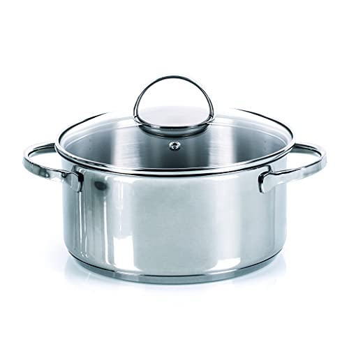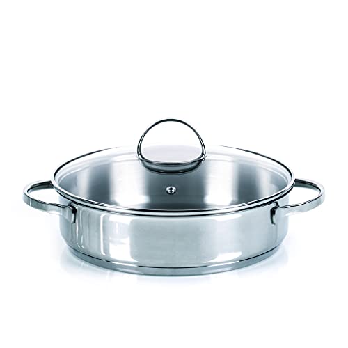 O in acciaio inox AISI 304, spessore 0,6 mm. Fondo termodiffusore incapsulato, per tutti i fuochi compresa induzione, per una eccezionale diffusione del calore
