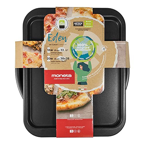 Moneta Eden Set Pizza + Teglia Bassa in Alluminio Riciclato da Lattine, 100% Made in Italy
