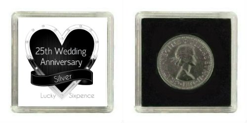 Moneta da sei penny portafortuna in argento - Idea regalo per il 25° anniversario di nozze