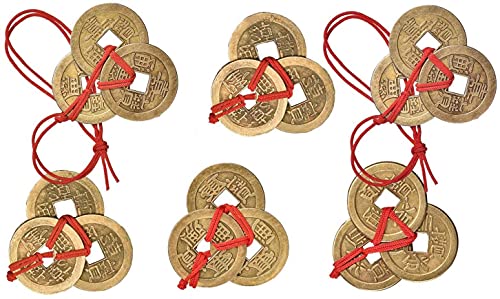BN Monete cinesi, Monete fortunate, Monete cinesi Feng Shui, Moneta di I-Ching con cordino rosso per buona fortuna e salute, 6 set 6 stili (3 monete per set)