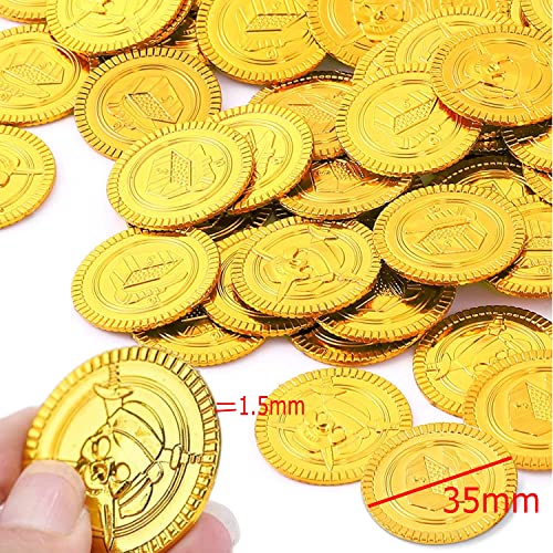 JZK 100 x Monete d'oro in plastica finte Monete Pirata Caccia al Tesoro Giocattoli per Bambini Festa bomboniere Feste per Halloween/Natale/Festa di Compleanno per Bambini