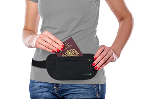 Money Smart Marsupio da Donna e da Uomo (2 Pezzi), Protezione RFID, Portadocumenti da Viaggio con Porta Carte Credito Indipendente, Cintura Portasoldi