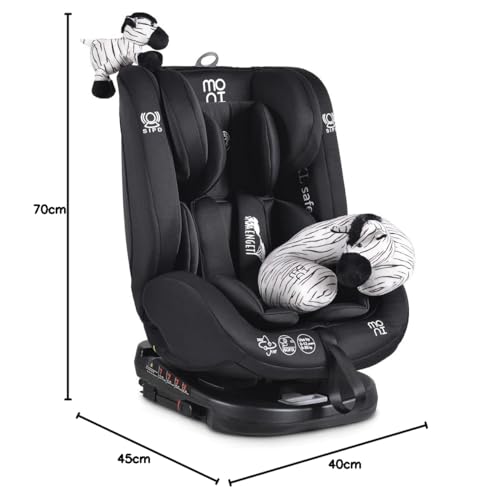 Moni seggiolino Serengeti 0-36 kg gruppo 0/1/2/3 Isofix cuscino peluche animale, colori:nera