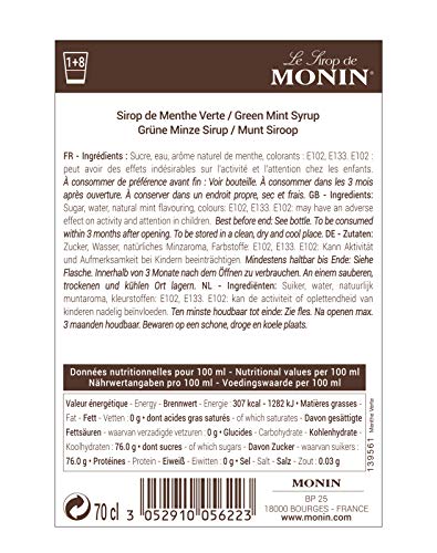 Il sorprendente verde smeraldo e il sapore aromatico naturale dello sciroppo di menta verde creeranno splendidi cocktail a strati