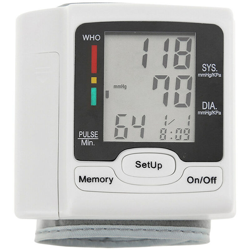Specifiche: Voltaggio: 3V Colore: bianco Display: LCD Pressione: ±3mm Hg Peso della confezione: 148 g/5,2 once Frequenza del polso: 40-165 volte/min Precisione del polso: ±5% di lettura Dimensioni del pacchetto: 9 * 7,5 * 7,5 cm / 3,5 * 3 * 3 pollici Tipo di elemento: sfigmomanometro da polso Intervallo di misurazione: 20 mmHg ~ 280 mmHg Alimentazione: 2 batterie alcaline AAA (non incluse) Elenco dei pacchetti: 1* Manuale 1 * Misuratore di pressione sanguigna