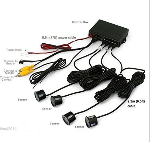 BW® Monitor LCD a colori per auto da 4,3” per specchietto retrovisore + telecamera per retromarcia con visione notturna + 4 sensori di parcheggio, 1 cicalino