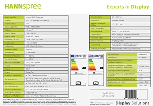 Monitor Hanns HS228PPB 21,5" 1920x1080 ULTRASLIM 5MS VGA HDMI DP Altoparlanti Nero