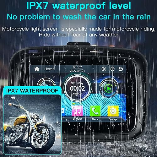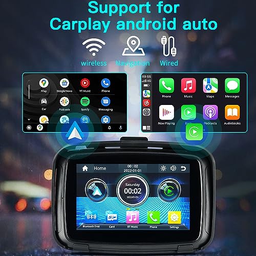 Monitor per Moto Portatile Compatibile con Wireless Apple Carplay e Android Auto 5'' IPS Impermeabile IPx6 Dual Bluetooth Altoparlante Incorporato per Motocicletta Alimentato da 5V~50V