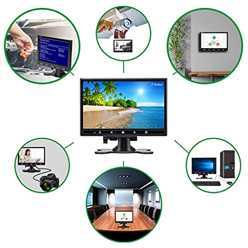 Monitor da 7 Pollici Piccolo Schermo HDMI TFT LCD Display Full HD 1024x600, Entrata AV/VGA/HDMI, con Bottoni Tattili, Altoparlante Integrato, Compatibile con Telecamera di Sicurezza