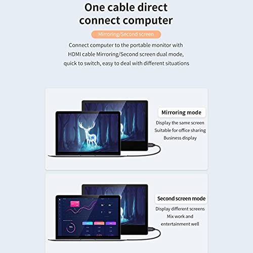 Computer Monitor & Gaming Monitor: il monitor portatile 1080P è dotato di porte USB Type-C completamente funzionali e porte HDMI-compatibili. Come monitor esterno, questo monitor portatile da 13,3" può essere utilizzato con un computer in modalità duplicata ed estesa, e può essere commutato tra modalità verticale e orizzontale. Questo display portatile può funzionare perfettamente anche con smartphone, fotocamere, il dispositivo compatibile per PS4, Xbox e Switch.