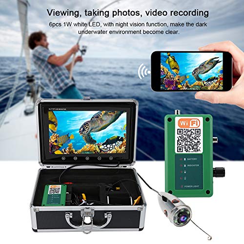 Monitor LCD portatile da 10.1 pollici Fish Finder HD 50M Telecamera da pesca 1000TVL, Telecamera subacquea IP68 Videocamera WiFi 164ft, Telecamera portatile per pesca subacquea.(Unione Europea)