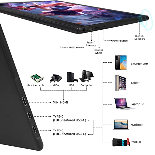 【Collegamento di più dispositivi】: dotato di 2 porte USB Type-C e di una porta Mini-HDMI, può essere facilmente collegato collegando il cavo HDMI o il cavo Type C (i cavi sono inclusi) al monitor di gioco portatile e collegandolo a smartphone, laptop, dispositivi desktop o di gioco come PS4/5, XBOX, o Switch, e altro ancora (la porta USB Type-C a sinistra per il trasferimento dei dati e l'alimentazione, e la porta USB Type-C a destra solo per l'alimentazione).