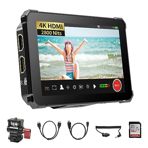 Monitor di registrazione Desview V5 2800 Nits, monitor da 5,5 pollici touchscreen con registrazione e riproduzione video in tempo reale 3D LUT 4K Uscita HDMI per DSLR, include scheda SD da 32 GB