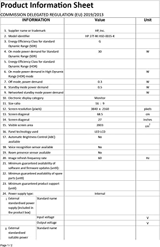 CONTENUTO DELLA CONFEZIONE: Monitor HP 27f Argento 5ZP65AA, Cavo HDMI, Scheda di garanzia, Pieghevole di installazione rapida, Kit di documenti e cavo di alimentazione CA