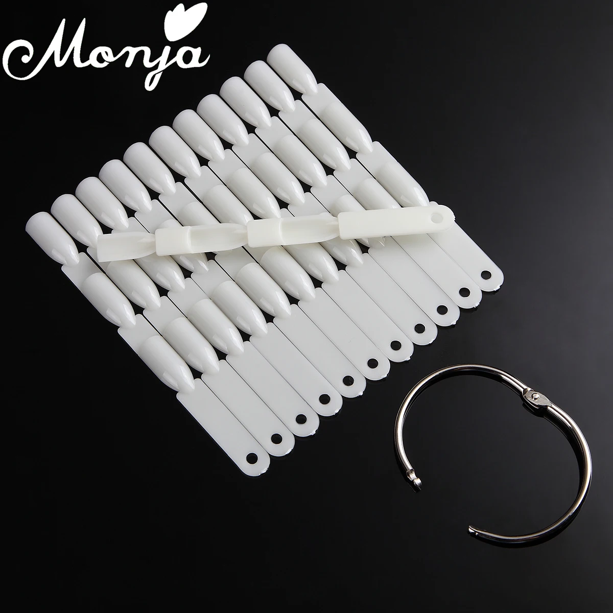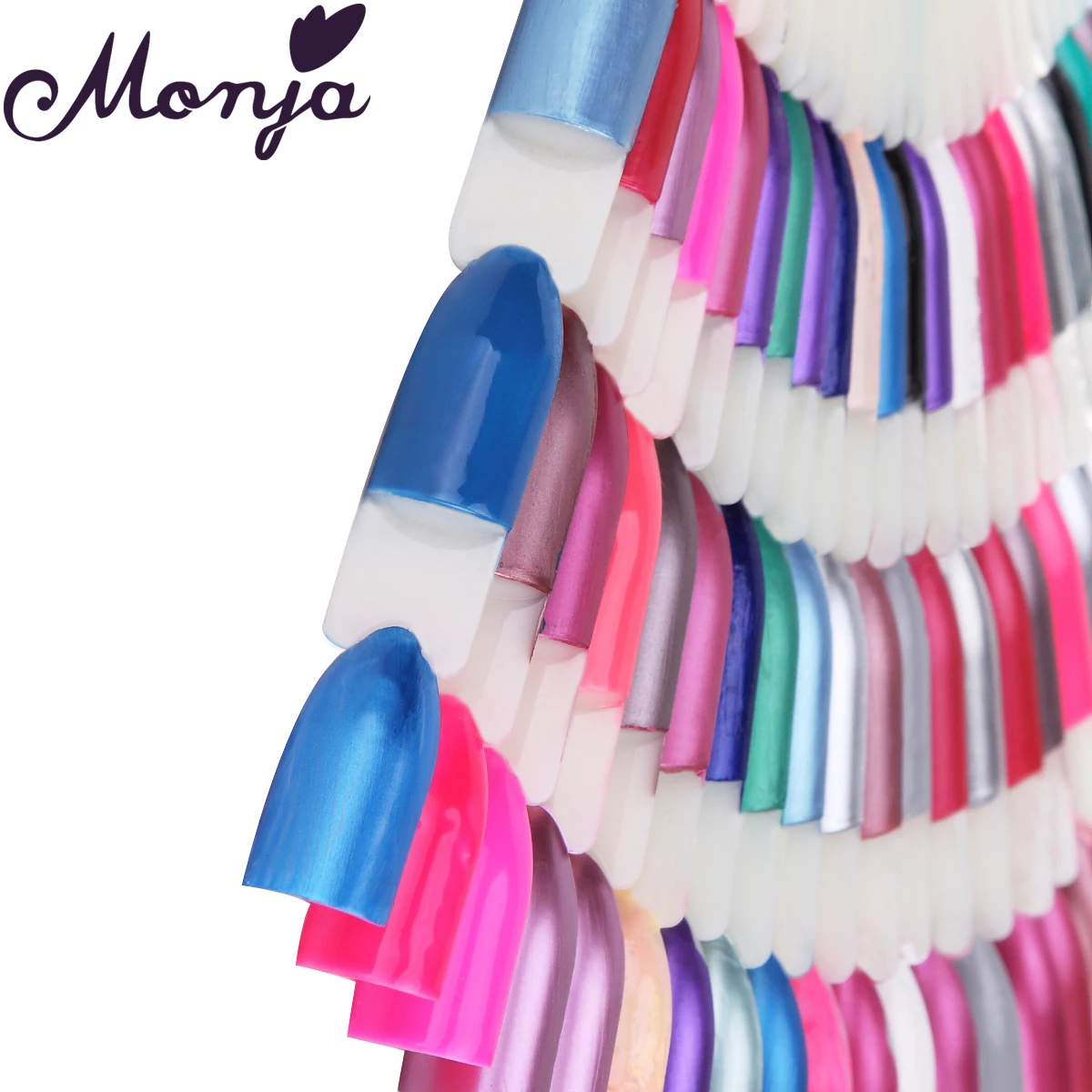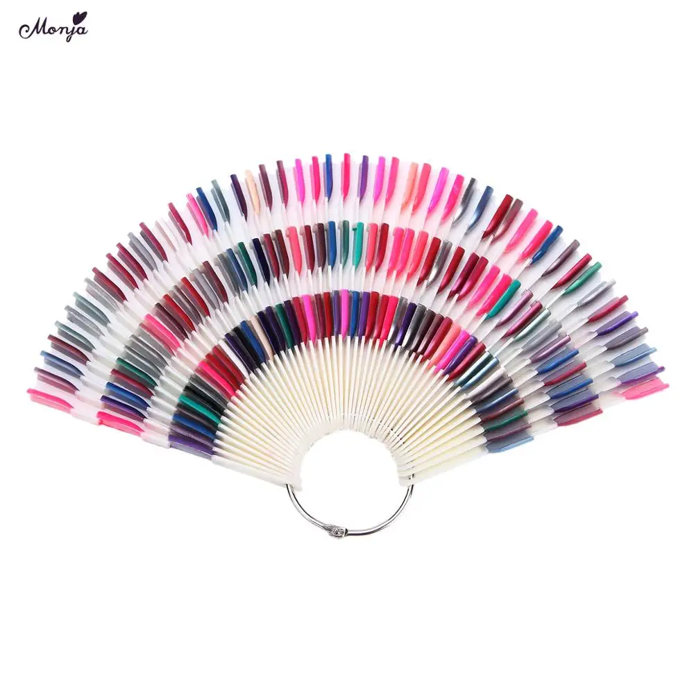Monja 150pcs Nail Art Fan Shape Display Natural Chart Gel Polish Coloring Sample Practice Training Nails With Removable Ring
