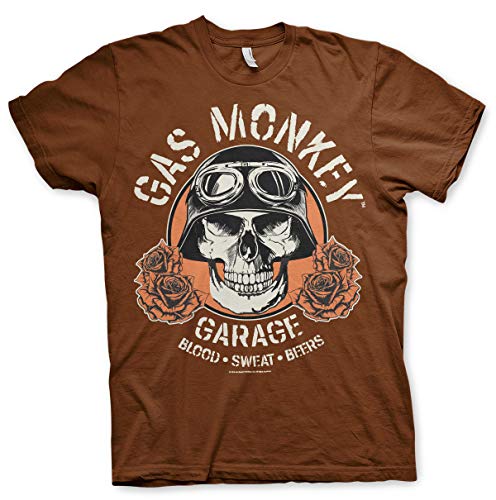 Gas Monkey Garage Licenza Ufficiale Skull Uomo Maglietta (Marrone), Medium