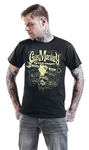 Gas Monkey Garage Garage Wrench Label Uomo T-Shirt Nero L 100% Cotone Regular