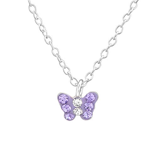 MONKIMAU Collana da bambina con ciondolo a forma di farfalla, in argento Sterling 925, con 8 cristalli Swarovski rosa, 39 cm, Argento, Cristallo