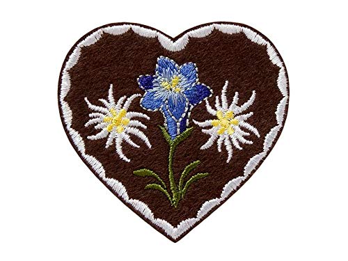 Mono-Quick Toppa termoadesiva da applicare con il ferro da stiro, a forma di cuore, stella alpina e enziana, 6,0 x 6,0 cm