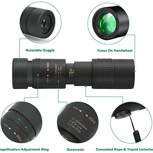 Ingrandimento più elevato: monoculare professionale che ti supporta nella regolazione tra 10 e 300 volte e offre ai tuoi occhi una scena più ampia e chiara
