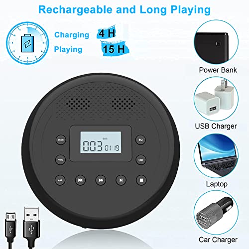 Monodeal, lettore CD portatile, lettore CD ricaricabile con altoparlanti integrati, lettore CD Discman per bambini/auto/studenti/adulti, lettore CD anti-skip con cuffie