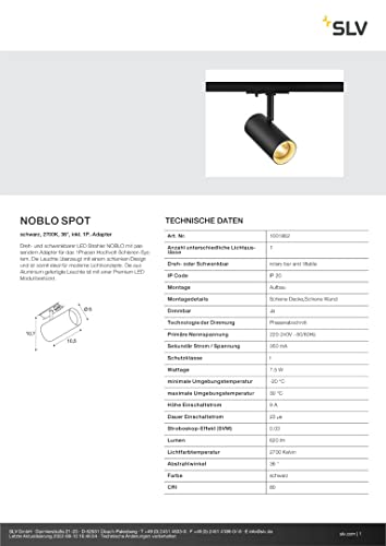 SLV monofase LED, faretto, Lampada a soffitto, Sistema a binari, Illuminazione da Interno / 2700K 7,5W 620lm dimmerabile 36 Gradi 7.5 W, NOBLO Spot Nero