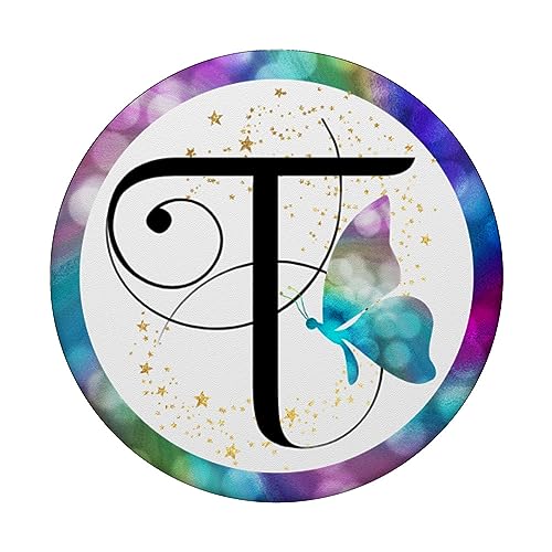 Monogramma lettera T personalizzata farfalla verde acqua PopSockets PopGrip Intercambiabile