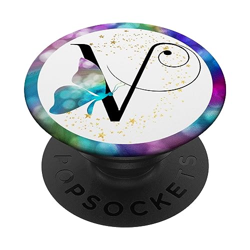 Monogramma personalizzato lettera V personalizzata farfalla Teal PopSockets PopGrip Intercambiabile