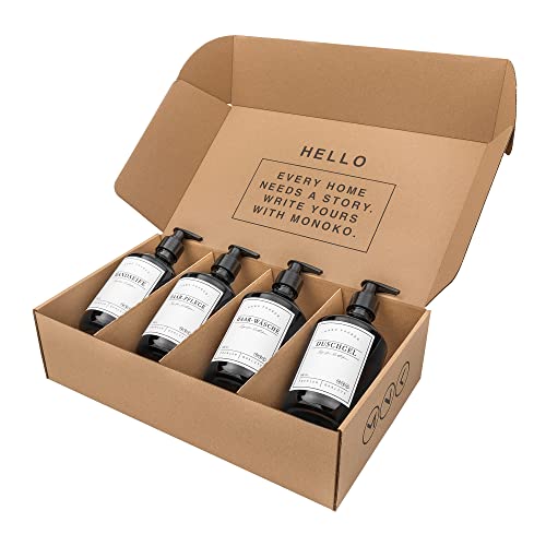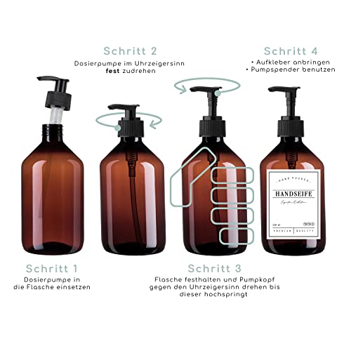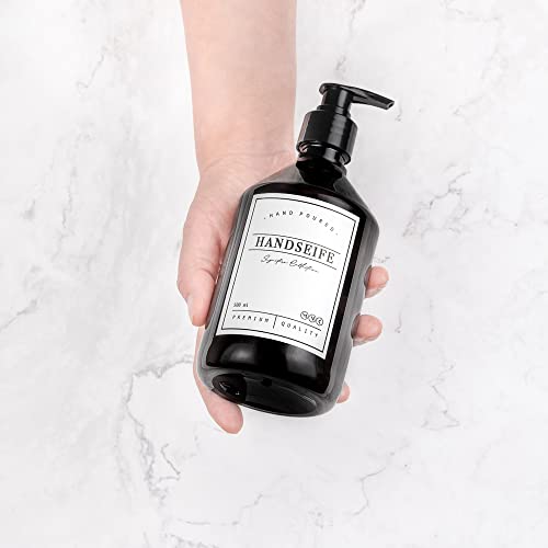 MONOKO Set di 4 distributori di sapone in plastica, colore nero, bottiglia da 500 ml, dispenser per detersivo da cucina, dispenser per shampoo da riempire, dispenser per pompa + etichette