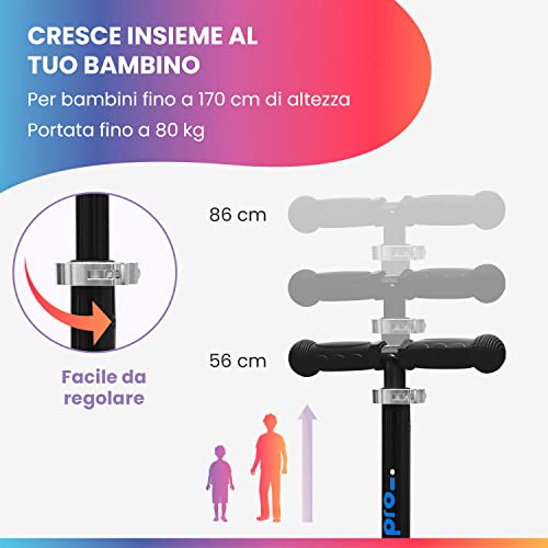 Fun Pro Two - Monopattino per bambini a partire da circa 5 anni, fino a 80 kg di peso, ruote a LED, pieghevole, certificato TÜV, Nero