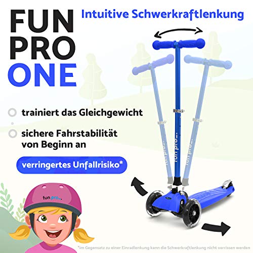 Fun Pro One - Monopattino per bambini, con ruote a LED, pieghevole, dai 2 anni in su, certificato TÜV, Marine