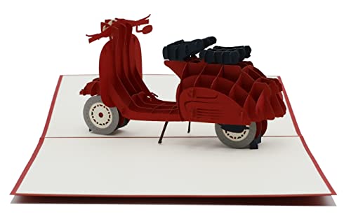 Monopattino elettrico "Vespa", biglietto pieghevole 3D, biglietto pop-up, biglietto di auguri, biglietto di auguri, biglietto regalo