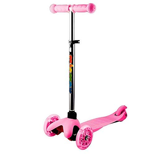 MONOPATTINO 3 RUOTE per BAMBINI ALTEZZA REGOLABILE MONOPATTINO 3 ruote LUCI LED FRENO (Rosa)