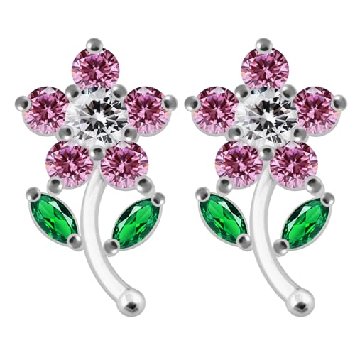 Monster Piercing - Orecchini a Lobo in Argento Sterling 925 con Pietra e Fiore e Argento, Colore: Rosa, cod. EBP-MP-AR071PK