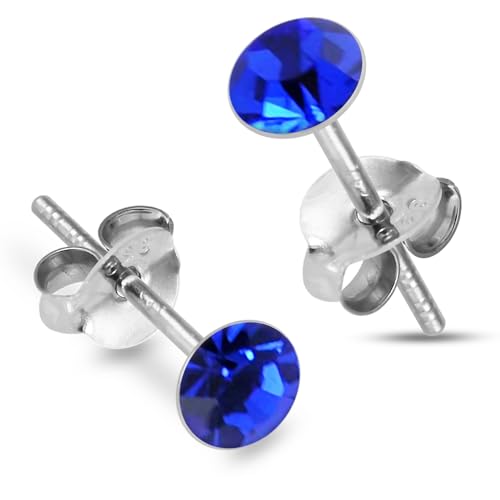 MONSTER PIERCING Orecchini a perno in argento Sterling 925 con pietra portafortuna rotonda, argento sterling, pietra, zaffiro