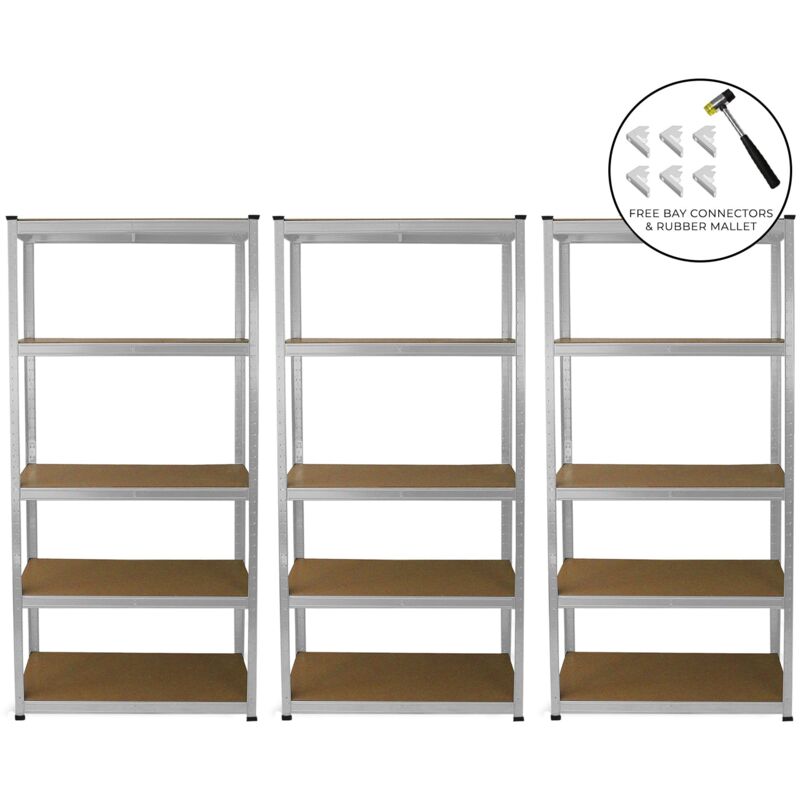 Mantieni il tuo spazio in ordine e metti ogni strumento e oggetto al suo posto con questa incredibile offerta di scaffali E-Rax! Elegante grazie alla sua linea sottile, questo scaffale in acciaio galvanizzato non solo è bello da vedere ma è anche una pratica soluzione per qualsiasi officina o garage. E' leggero e solido al tempo stesso grazie al suo acciaio galvanizzato. Ogni ripiano ha un'incredibile capacità di peso di 200kg ed è supportato da un robusto asse centrale, il che non ti farà preoccupare sulla quantità di oggetti e strumenti che vorrai riporci sopra. Questi scaffali sono inoltre senza bulloni, per questo motivo sono facili da montare e necessiterai solamente di un martello di gomma che ti offriamo GRATUITAMENTE. Questa offerta include anche GRATUITI connettori per collegare gli scaffali e garantire maggiore stabilità. Caratteristiche del prodotto: Martello di gomma GRATUITO per un facile assemblaggio. Utilizzalo per incastrare per bene i vari pezzi tra loro. Connettori