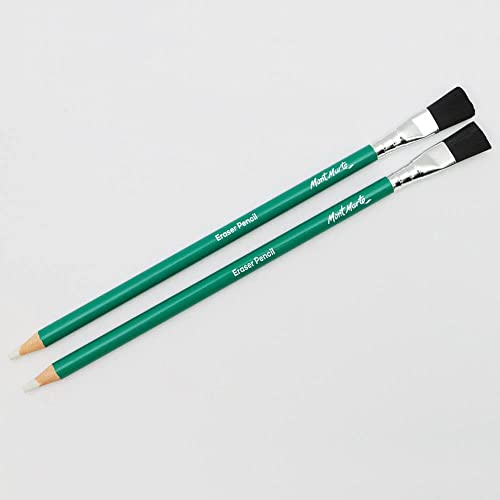 Mont Marte Gomma Matita - 2 pezzi - Matita Gomma di Precisione con striscia di 4 mm - Pennello sul retro - Ideale per Cancellazione precisa