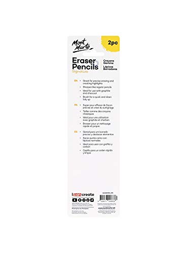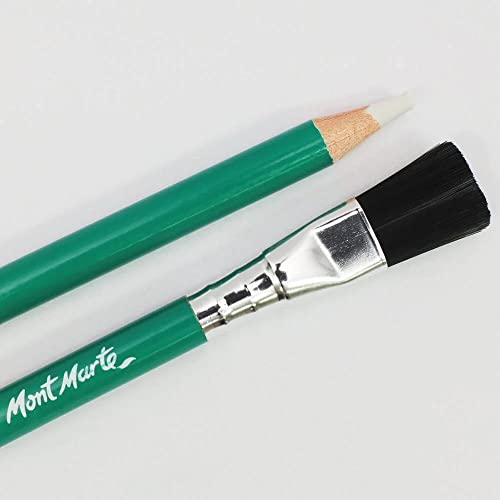 - Le pratiche matite con gomma di Mont Marte sono facili e comode da impugnare. Questo ti dà il massimo controllo per perfezionare la tua opera d'arte. Quando l'area desiderata è stata cancellata, il pennello può essere usato per la pulizia.