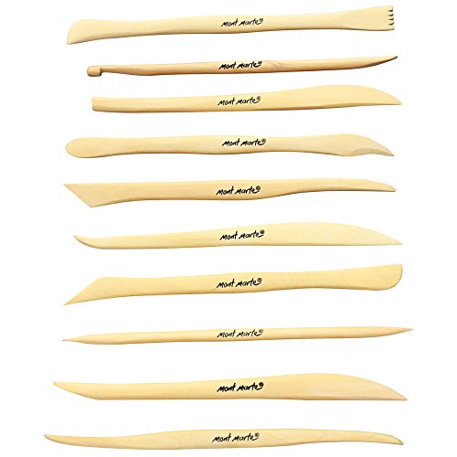 Mont Marte - Mini attrezzi da modellazione, in legno di bosso 10 pezzi, ideale per l'uso con argilla polimerica