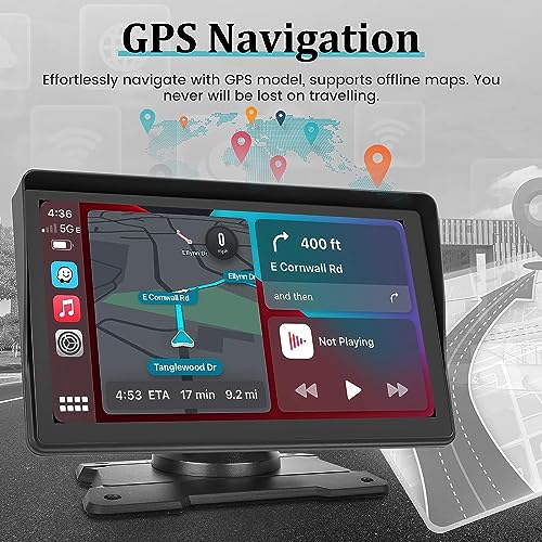Montaggio wireless Apple Carplay Dash, schermo auto Android Auto portatile da 7 pollici, sistema di navigazione GPS per auto con Mirror Link/Bluetooth/FM + telecamera di retromarcia